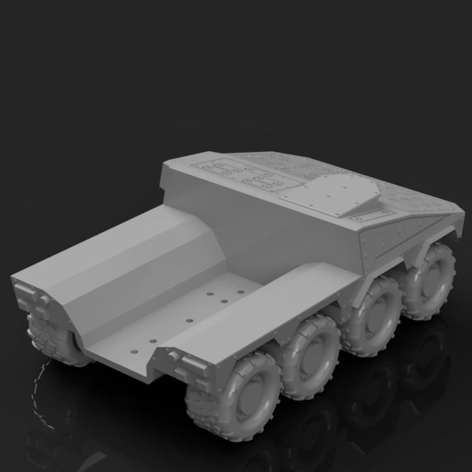 Based on the real world Boxer Armoured Transport Vehicle, this vehicle consists of a common chassis and interchangeable mission module. Just like the real vehicle, this allows for cost savings due to the fact that you don't need to print an entire vehicle out for every role. Simply print enough hulls that you expect you would need at any one time, and enough of each module and swap out as needed.